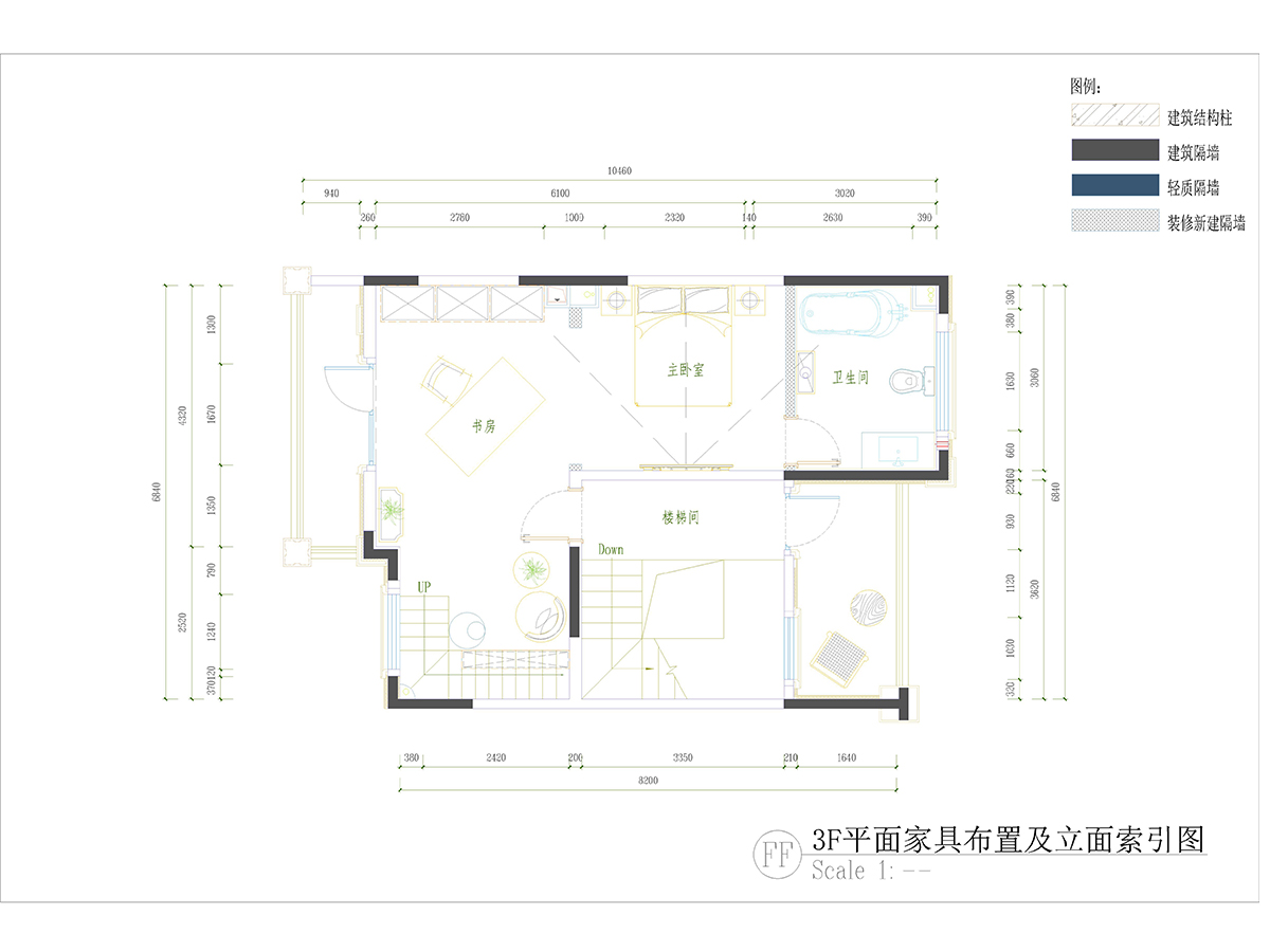 本案業主為年輕人,不喜歡過于復雜的家具,裝修風格以簡潔大方為主,整體色調上采用淺色調,使整個空間感覺更加明亮。業主居家辦公時間較多,在頂層臥室增加書房功能。