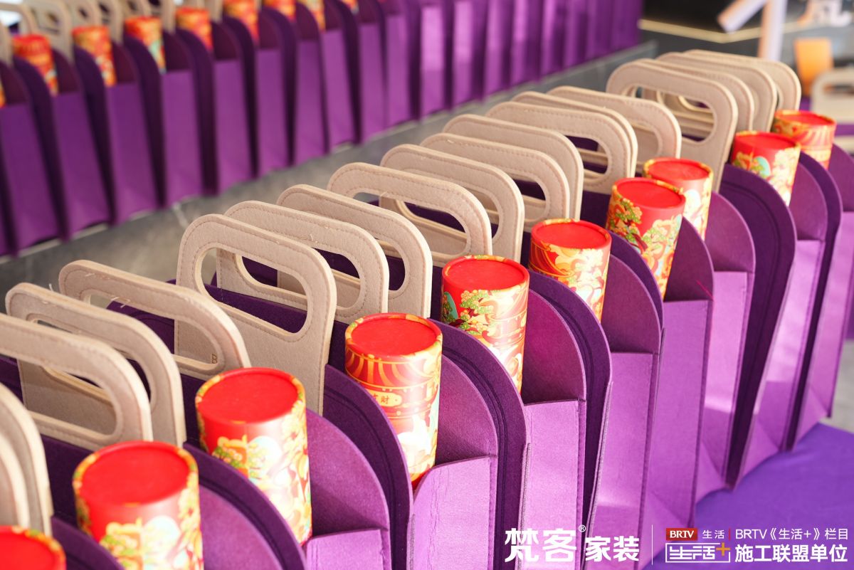 十里河店、奧體中心店,雙店同享這份喜悅,此刻的大廳已經被寓意“尊貴與慈愛”的帝王紫覆蓋,專門定制的印有梵客家裝字樣的手提袋內塞滿了神秘禮物,令人迫不及待想開啟盲盒。