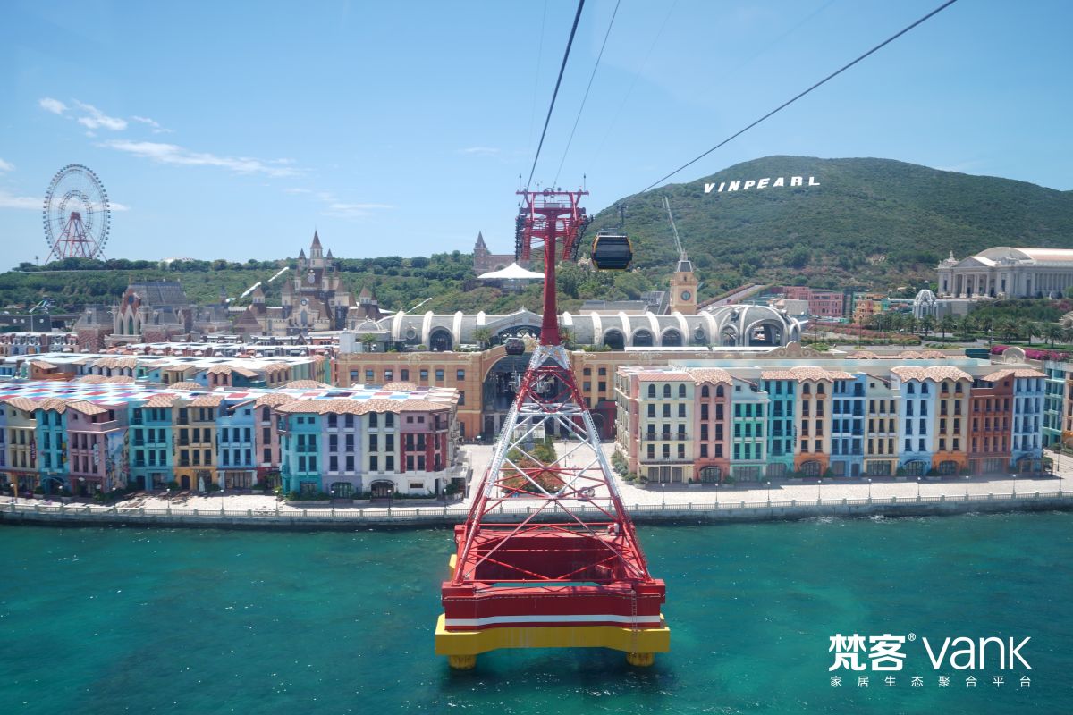 珍珠島游樂園位于Hon Tre竹島,清晨動身出發,需搭乘3320米跨海纜車才能登島,據說這是世界最長的跨海纜車,可以俯瞰整個芽莊海灣的美景。在纜車上,即可看到半山腰上Vinpearl的字樣,寓意這是越南海上的一顆明珠。