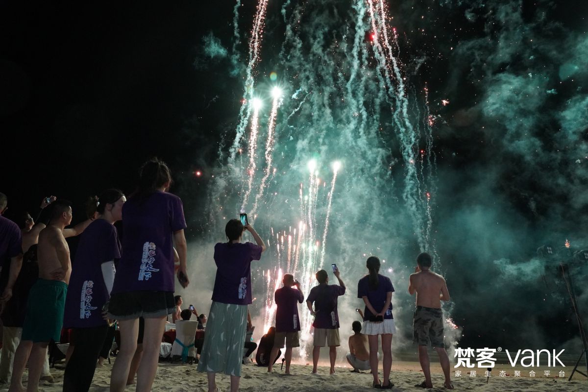 當煙花瀑布在夜空綻放,浩渺而幽靜的黑夜瞬間美輪美奐,也是在那一刻現場如海面一般平靜,大家舉目仰望,那里仿佛映射著每位梵客家人的璀璨星途。跨越山海,綻放青春,“梵客行天下”百人精英芽莊之旅圓滿成功,明年再見!