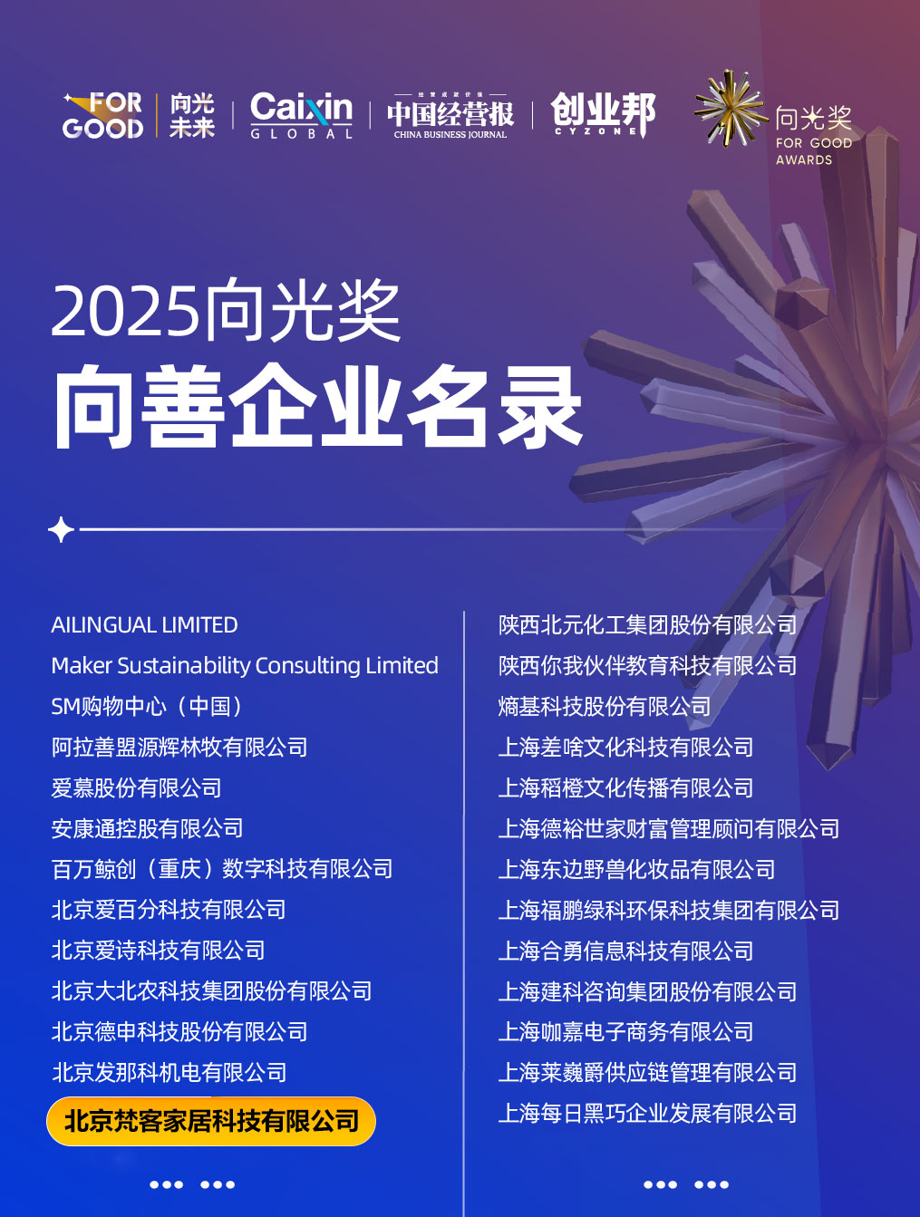 梵客家裝喜訊不斷,近日又斬獲一項殊榮——入圍“2025向光獎-向善企業(yè)名錄”!