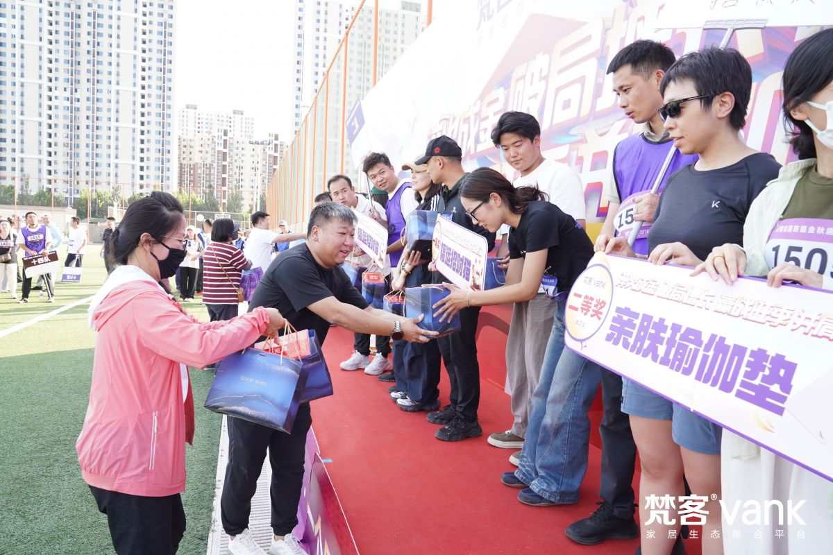 運動會的舉辦離不開公司的支持與關懷,讓大家勇于用行動踐行夢想,不斷超越自我、挑戰未來。汗水與拼搏后,迎來頒獎儀式。由梵客集團副總裁/梵客家裝總經理任琳女士、梵客家裝城外誠店負責人張迪先生、梵客優裝負責人徐飛先生分別向獲勝團隊頒發獎品。