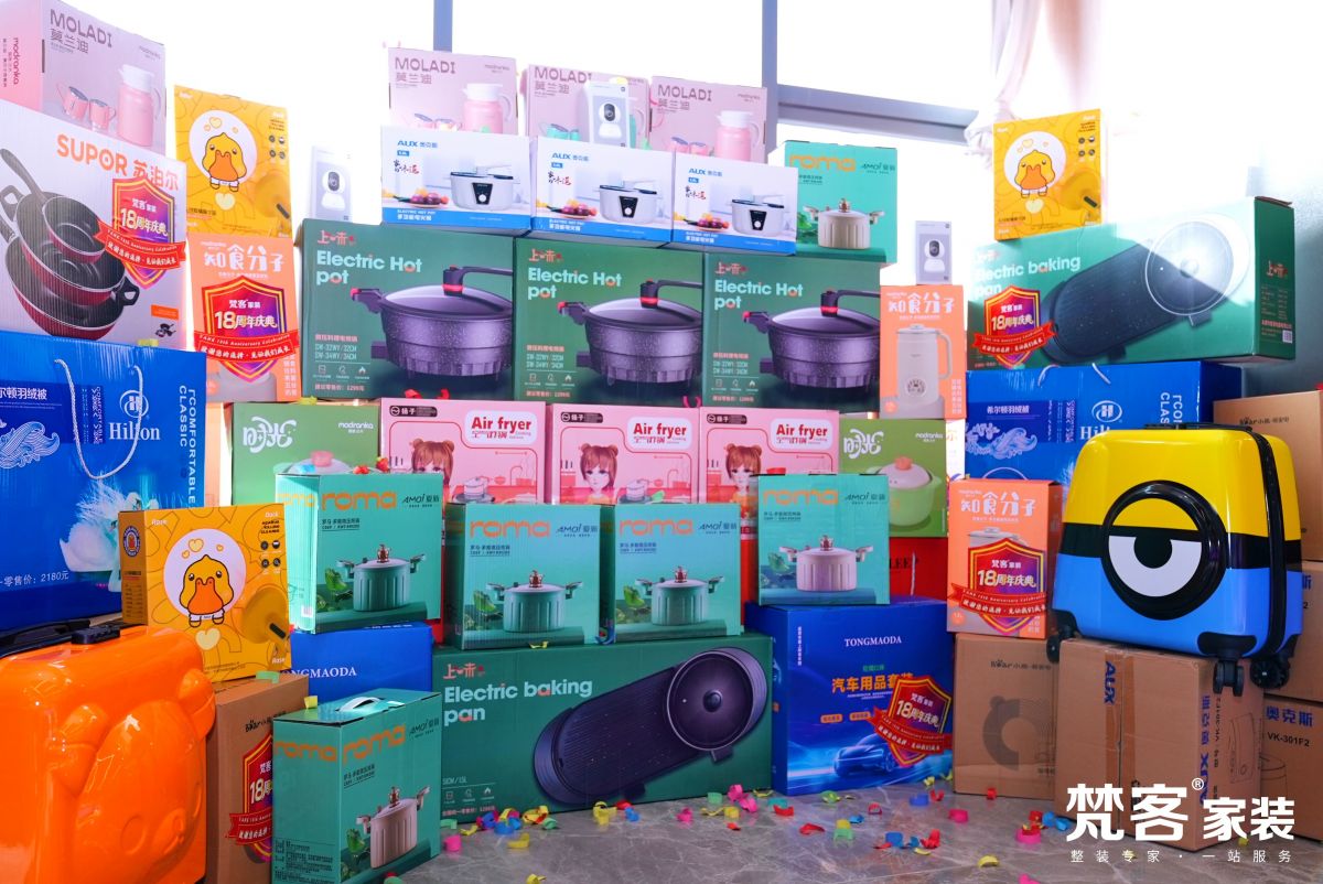 梵客家裝狂歡節,業主不僅享受到好品質好服務好價格的裝修,還在抽獎區、砸金蛋區收獲了額外的驚喜,冰箱彩電洗衣機空調熱水器等大家電、生活日用小電器…讓贈禮一步到位。