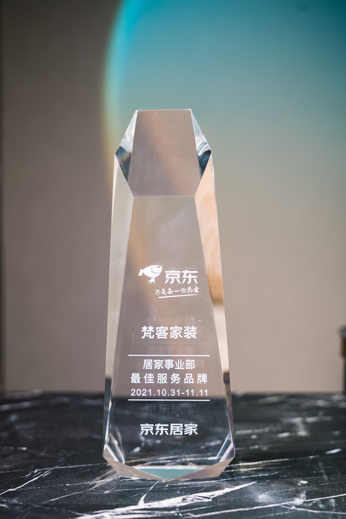 年初,梵客家裝收獲一枚獎杯,由【京東居家】頒發的最佳服務品牌獎。沉甸甸的“水晶”獎杯在燈光下閃爍熠熠光彩,仿佛是對過去一年成就的肯定,也是對未來的期待與激勵。