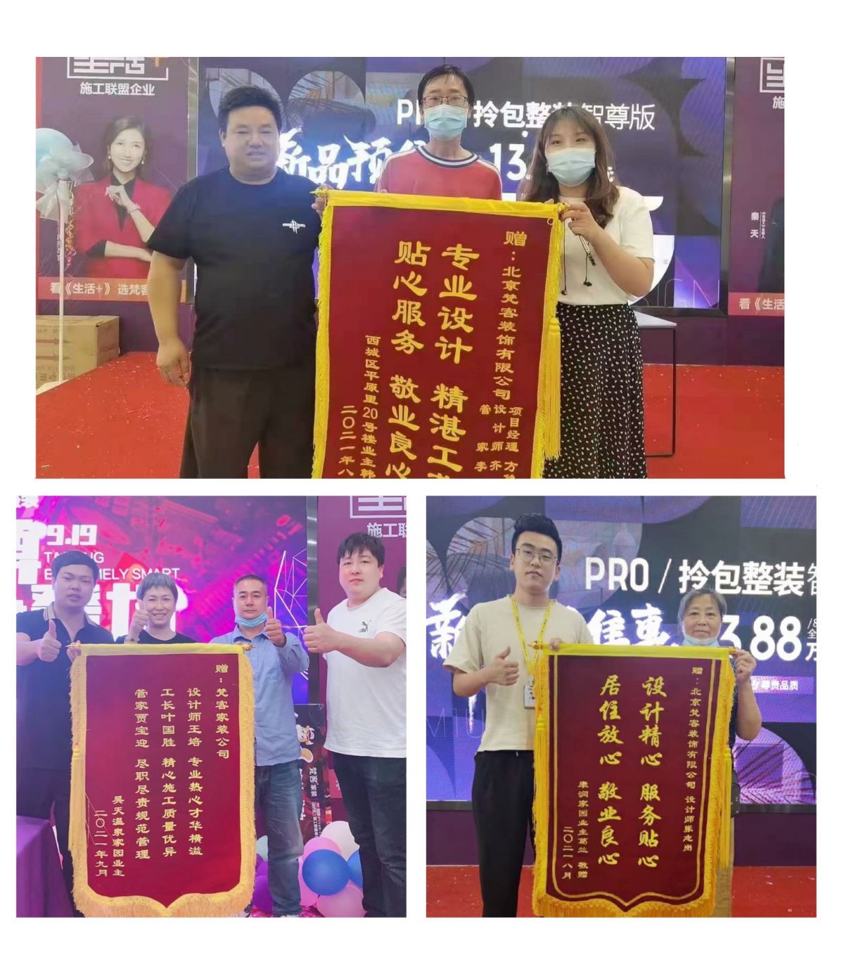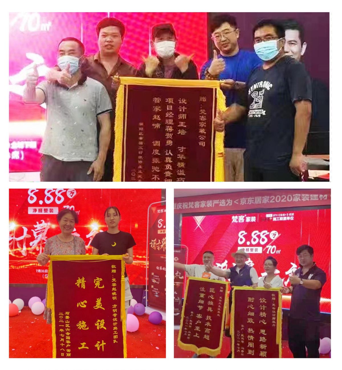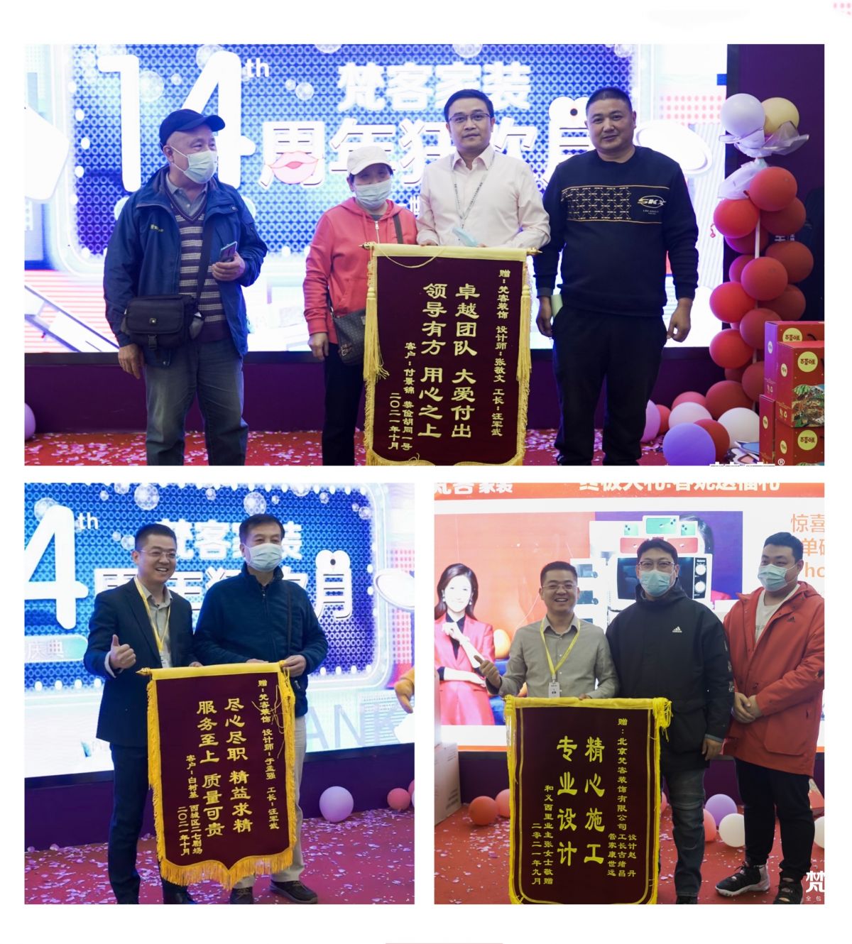 梵客的年終收官盛典可謂榮耀之夜,眾多業主送上錦旗,贊賞裝修流程非常規范化,前期對接客服很有耐心,中期對設計也滿意,工人手藝精湛,環保也做的好,讓人感到很踏實。