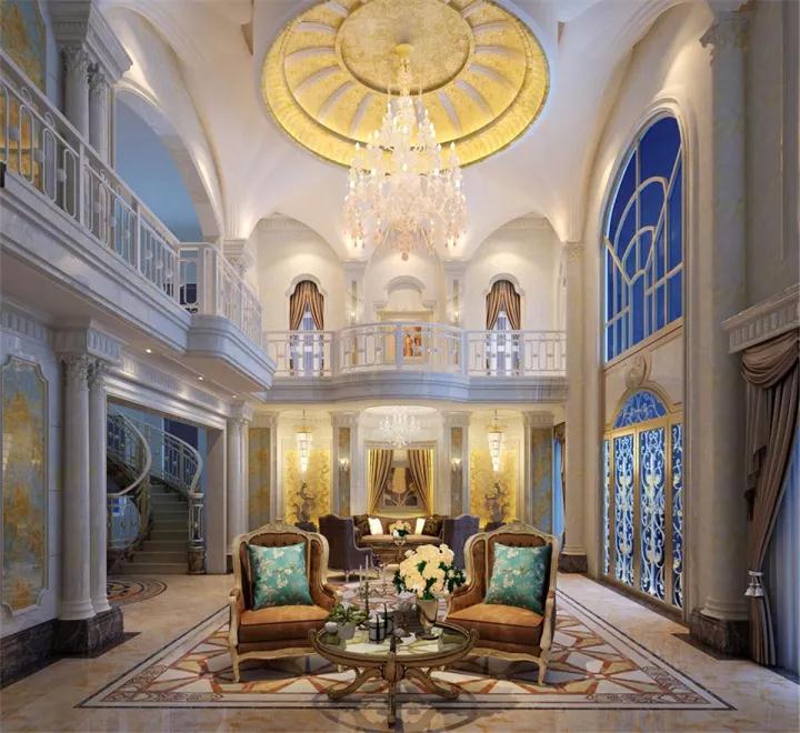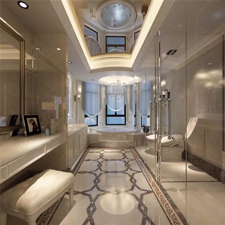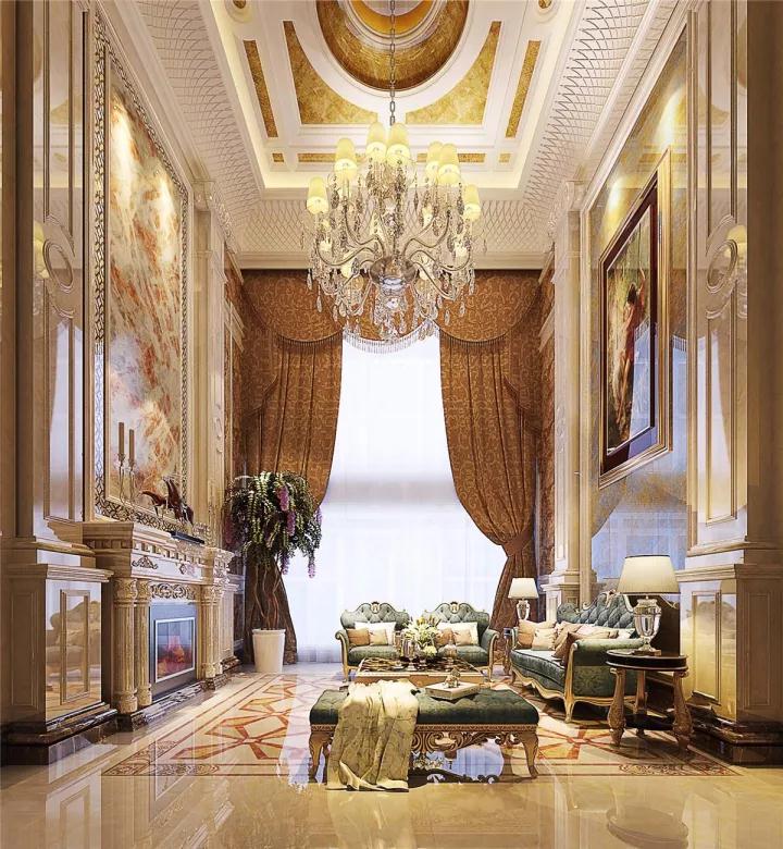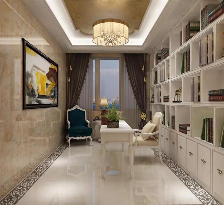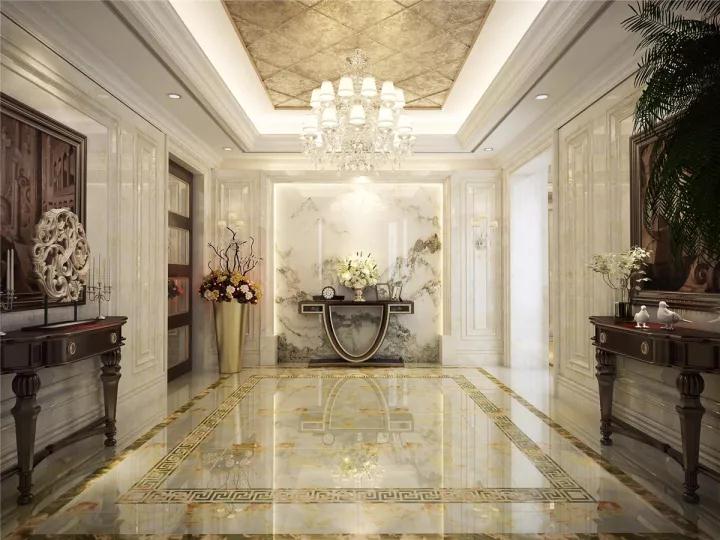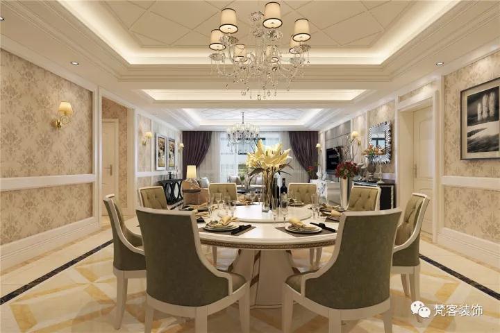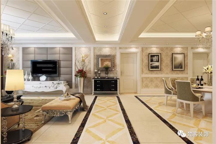 簡歐風格很注意材質的運用,本案例中,大量運用了石膏線, 瓷磚,墻紙,軟包,地毯,體現了整個空間的精致高貴。