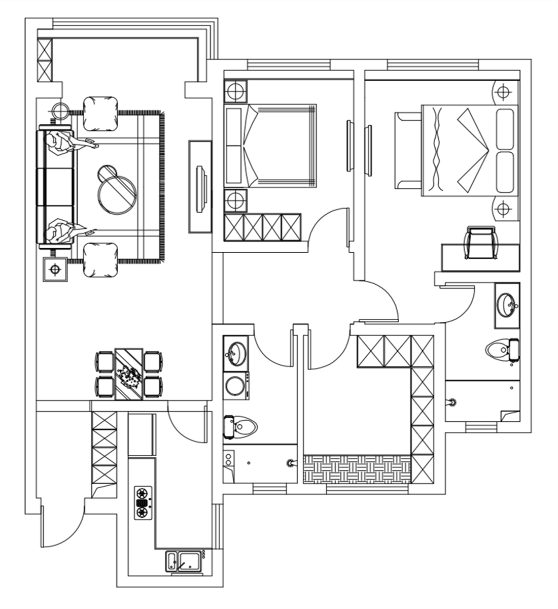 這是一套3室2廳1廚2衛(wèi)的新房,房型基本空間格局比較規(guī)整,動(dòng)靜空間(客廳、臥室)劃分合理,結(jié)構(gòu)上沒(méi)有做改變。